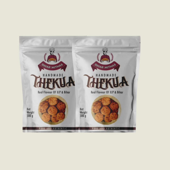 Bihar Mithas Thekua – Traditional Taste of Bihar (250g Pack)Enjoy the authentic flavor of Bihar with our handcrafted Thekua, made using pure wheat flour, jaggery (gur), and aromatic desi ghee. Each bite gives you the perfect blend of sweetness and crunch — just like homemade!Perfect for tea-time snacks, travel, or gifting. 100% natural, no preservatives, and freshly packed to retain taste and crispness.Ingredients: Wheat flour, jaggery, desi ghee, coconut, cardamom.Shelf Life: 45daysNet Weight: 250gStorage: Store in a cool, dry place in an airtight container.